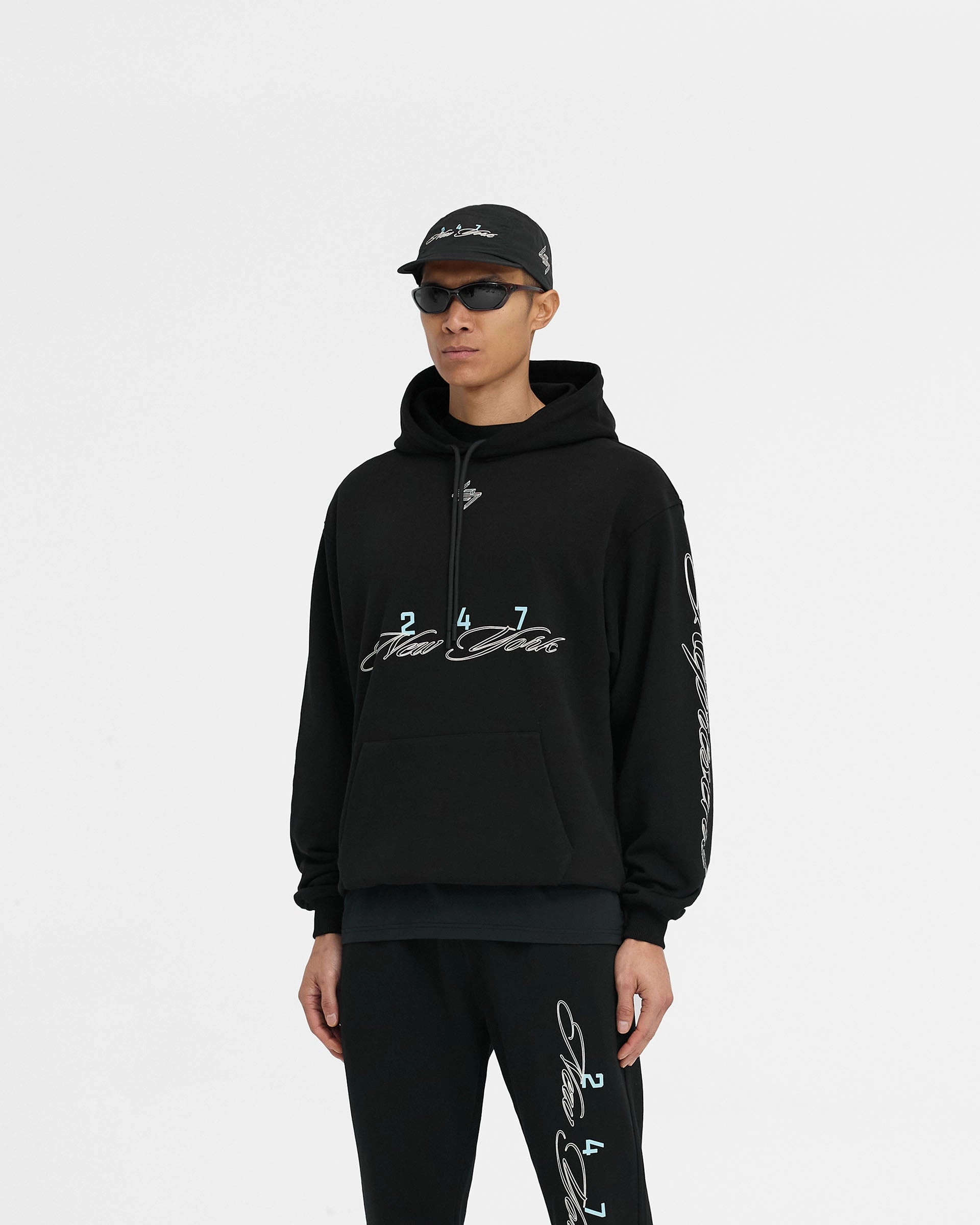 The 247 New York Hoodie in Black is the ultimate warm up layer for outdoor workouts, on the way to the gym, or whilst priming your body to train. With an oversized fit as well as a ribbed hem and cuffs, the hoodie provides unparalleled comfort, whatever the endeavour. This hoodie features the iconic New York statue, ??The Angel of the Waters??, to the back with the 247 numbers, as well as the 247 logo and New York script to the front. It is finished with a Represent screen print to the sleeve.