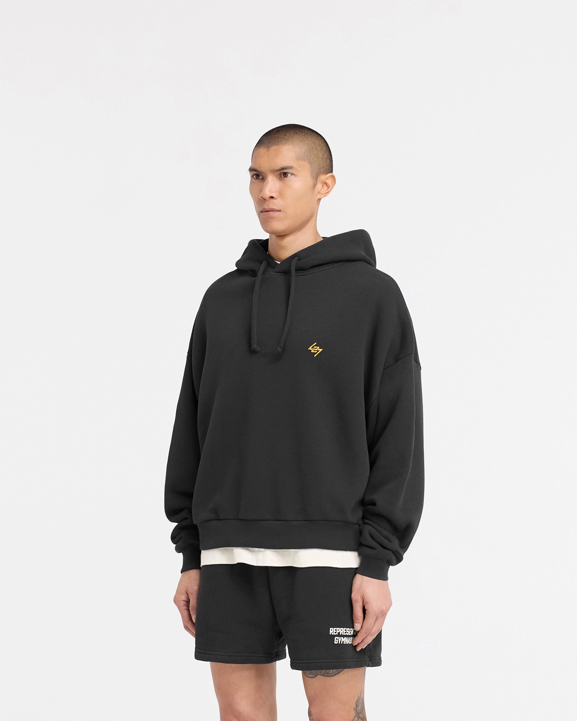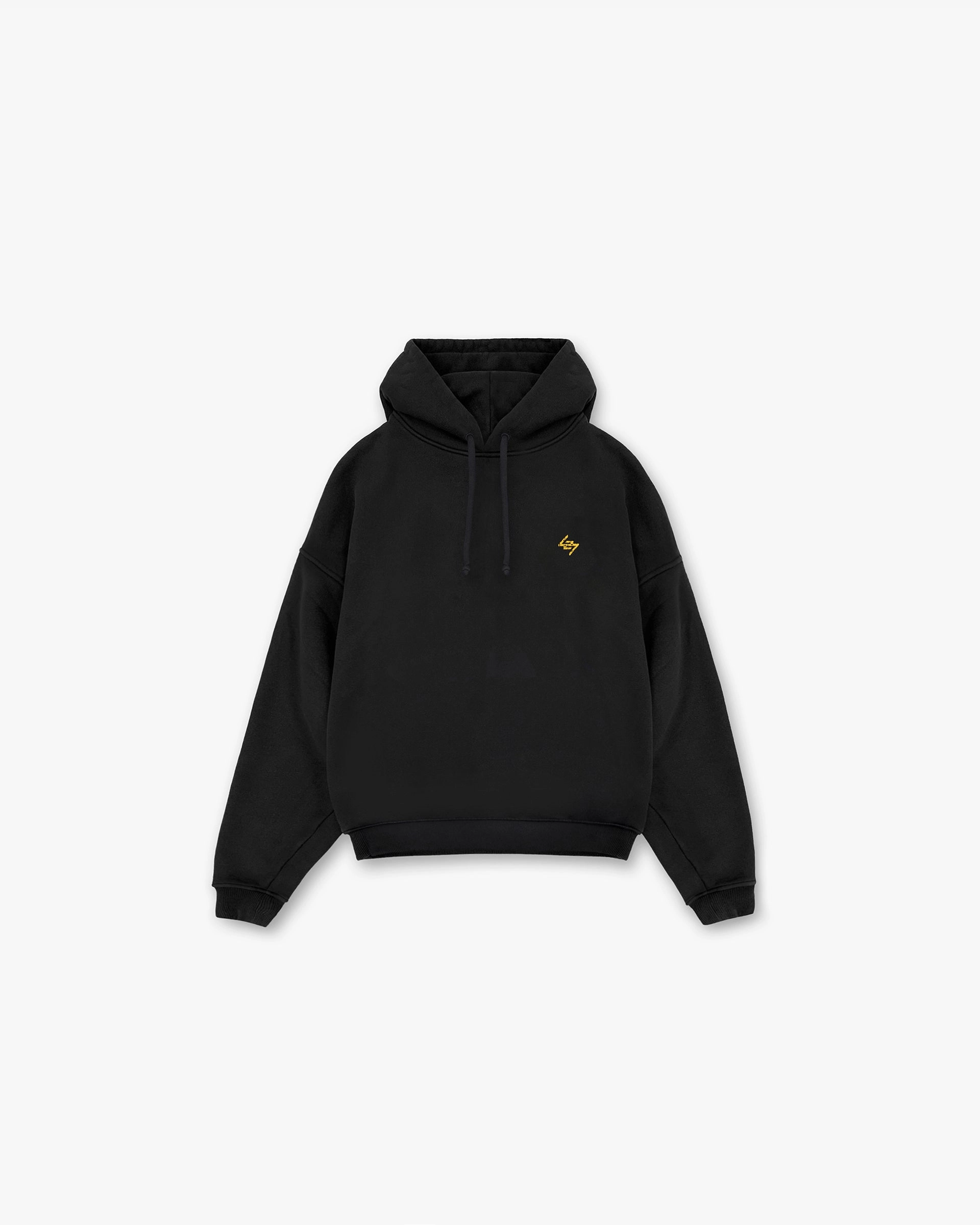 Introducing the 247 On His Shoulders Boxy Hoodie in Off Black, a relaxed boxy fit hoodie with a cropped body. The hoodie, crafted from a heavyweight fleece back cotton, has a ribbed hem and cuffs and external knotted drawcord to the hood for an adjustable fit. It is finished with a cracked 247 On His Shoulders graphic to the back, and 247 logo to the hood and chest.