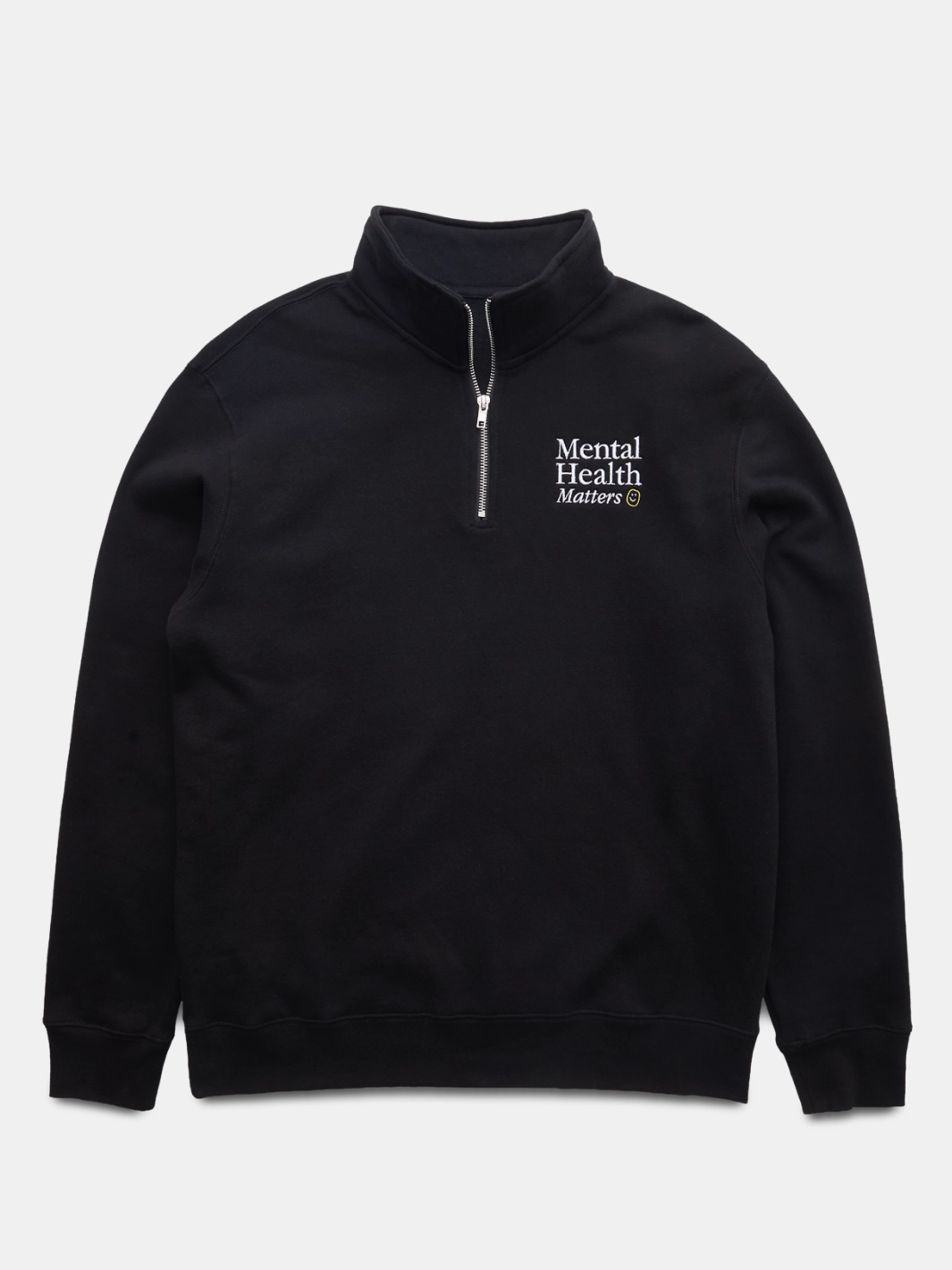 Mental health matters. Always. The Mental Health Matters Quarter-Zip keeps it simple with clean lines, bold embroidery, and a subtle reminder stitched close to the heart. With a cozy high collar and versatile black finish, it’s built for everyday ease and intentional living. Every quarter-zip sold helps support suicide prevention.