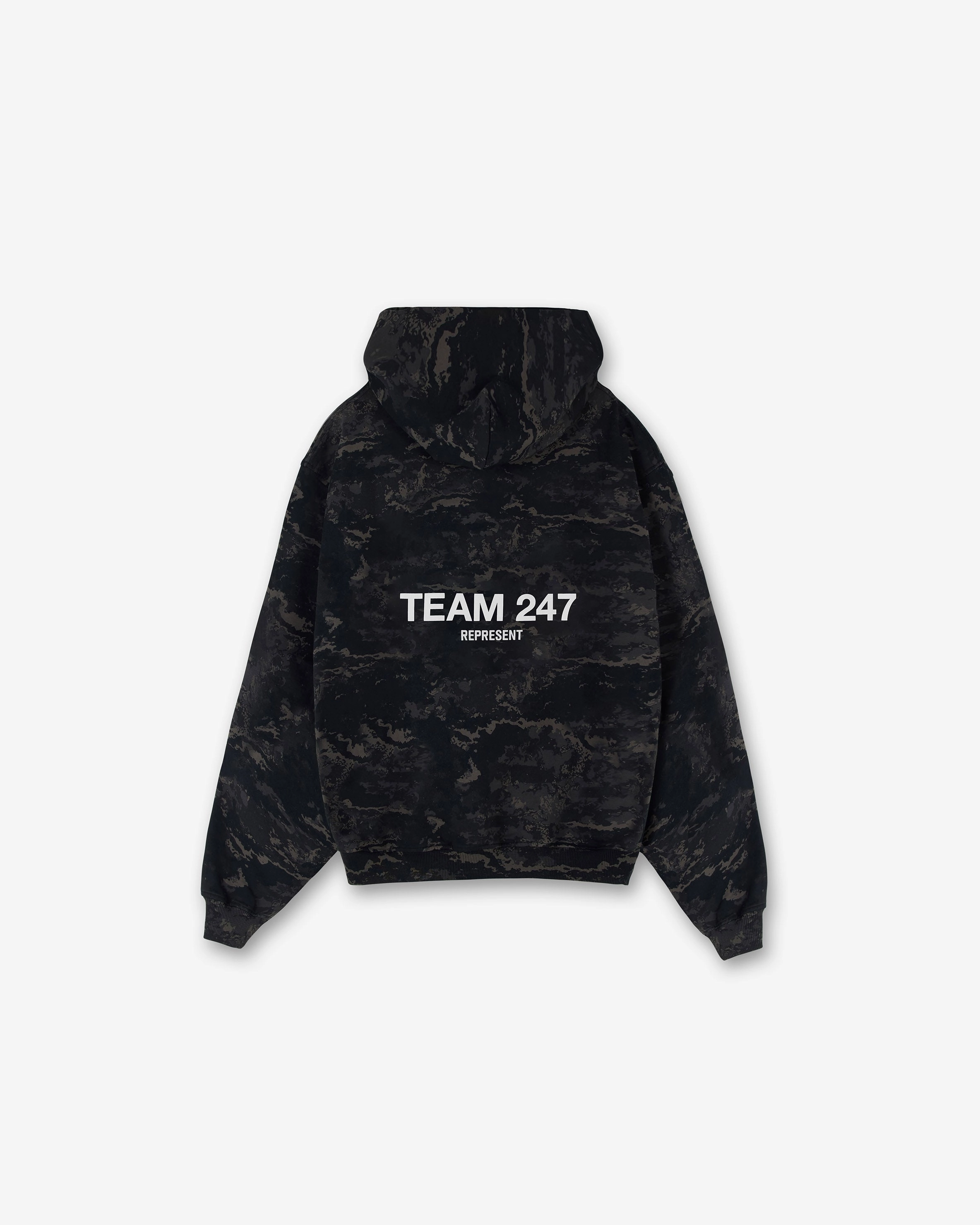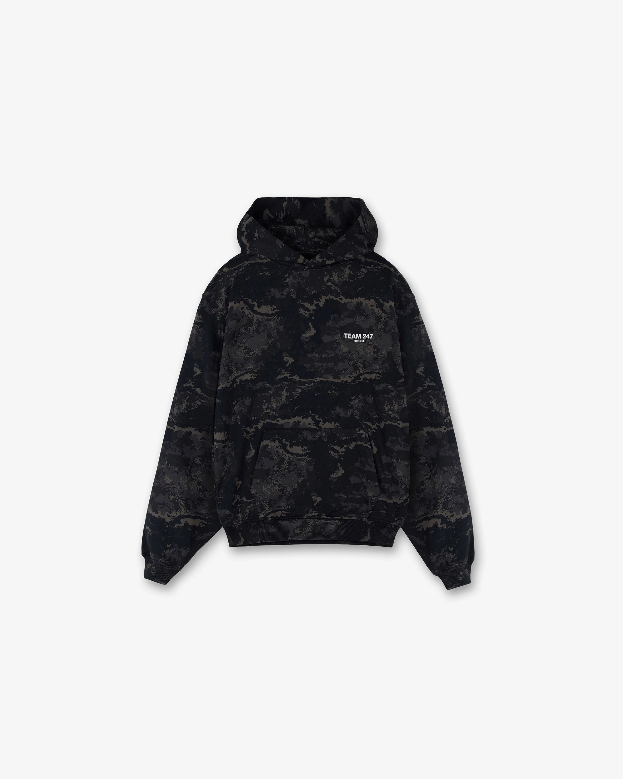 The Team 247 Hoodie in Black Camo is the ultimate warm up layer for outdoor workouts, on the way to the gym, or whilst priming your body to train. With an oversized fit as well as a ribbed hem and cuffs, the hoodie provides unparalleled comfort, whatever the endeavour. This hoodie features Team 247 branding to the chest and back.