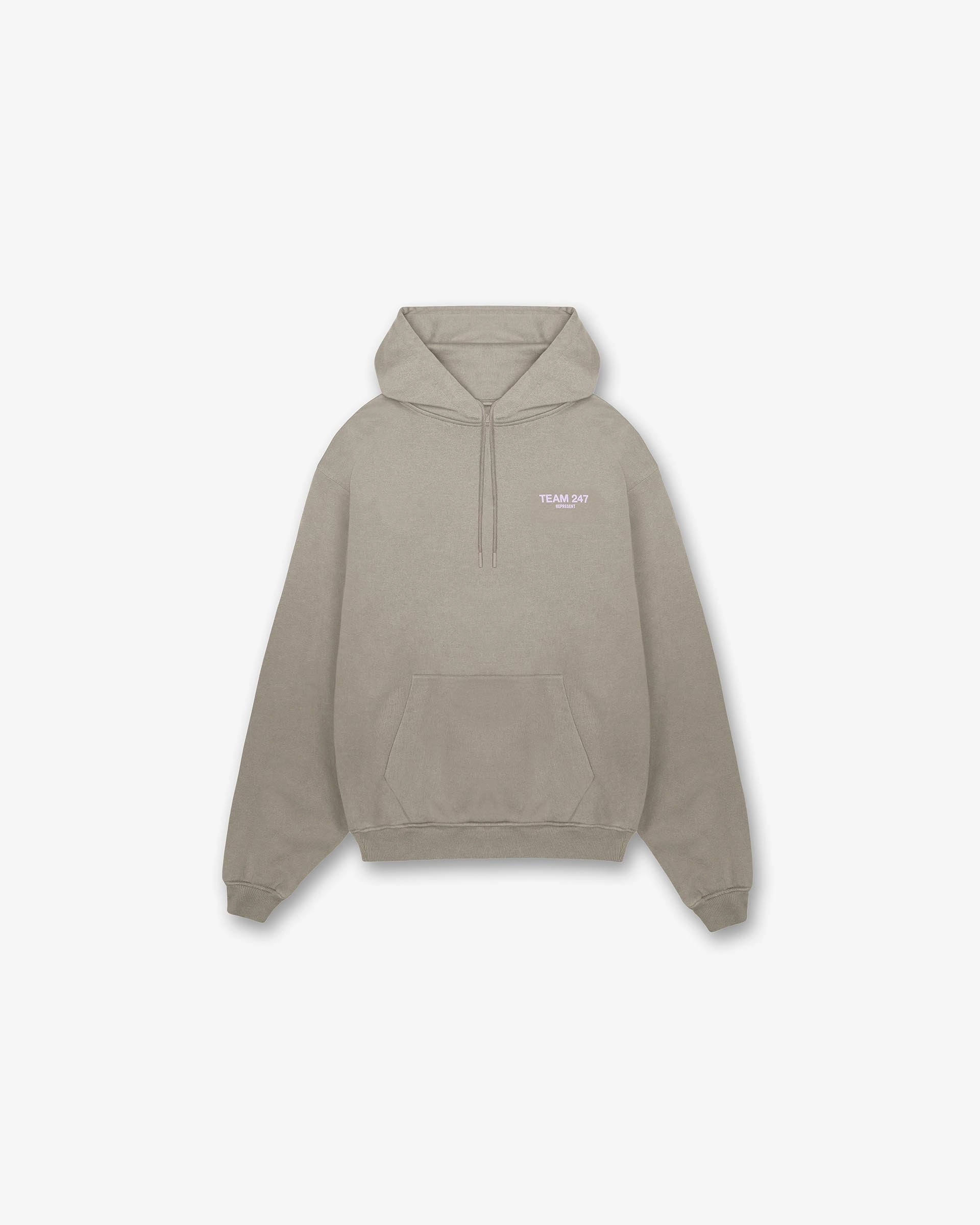 Introducing the Team 247 Oversized Hoodie in Khaki/Lilac, crafted from heavyweight jersey cotton. The hoodie showcases our Team 247 branding to the chest and back. It has a ribbed hem and cuffs for the ultimate fit, with internal drawcord to the hood.