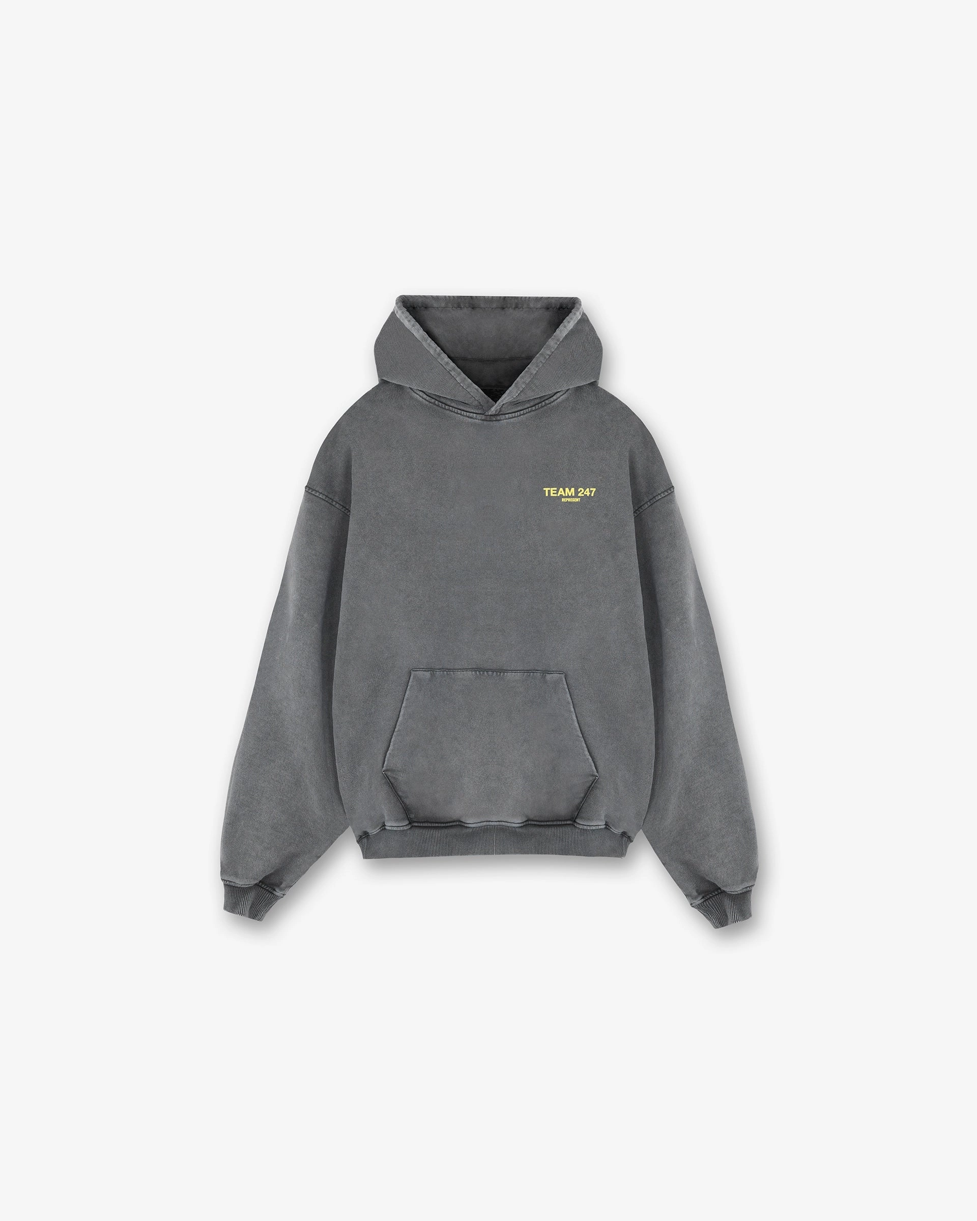 The Team 247 Hoodie in Pewter & Lemon is the ultimate warm up layer for outdoor workouts, on the way to the gym, or whilst priming your body to train. With an oversized fit as well as a ribbed hem and cuffs, the hoodie provides unparalleled comfort, whatever the endeavour. This hoodie features a yellow Team 247 print to the front and back, and tonal drawcords to the hood for an adjustable fit.