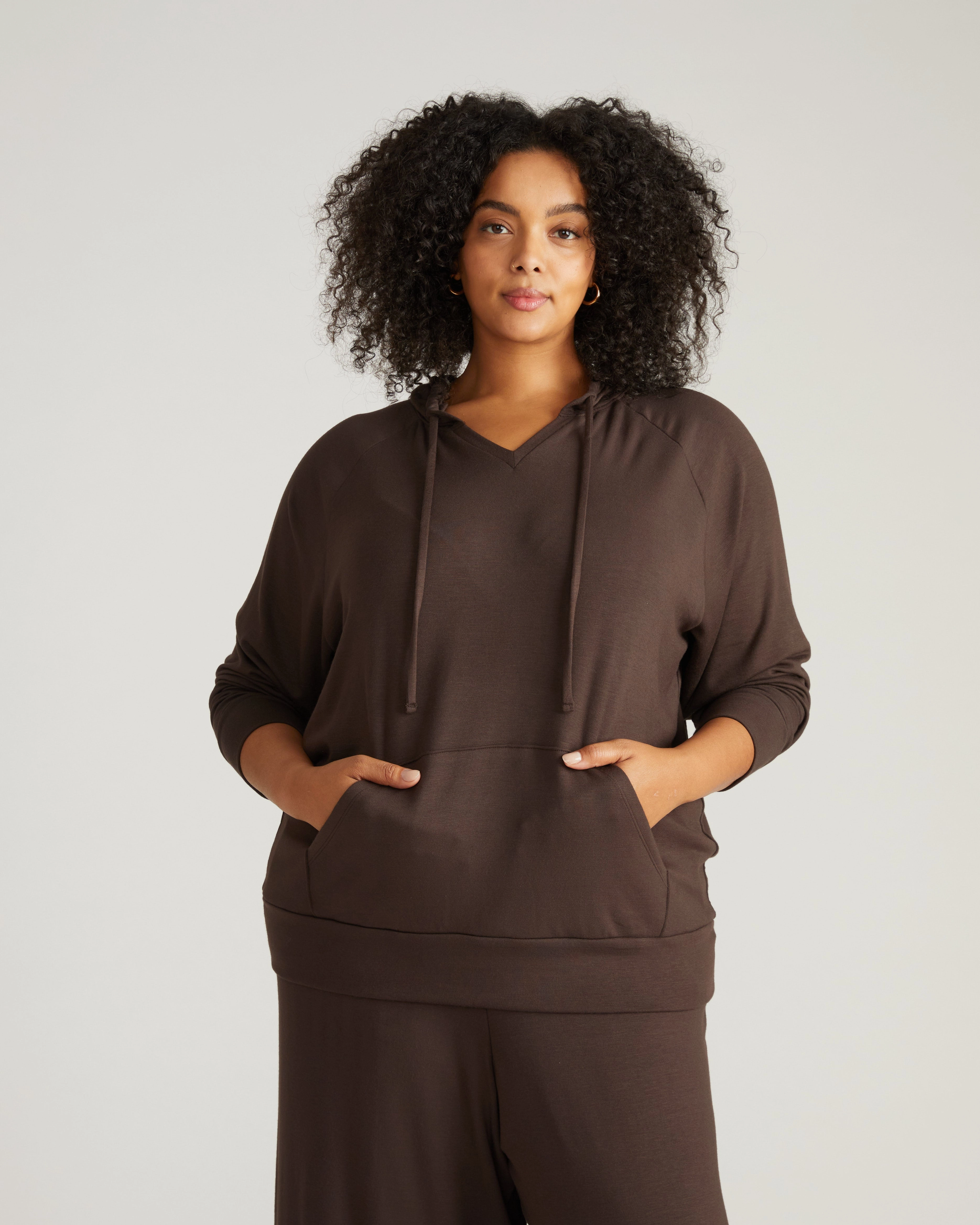 TravelKnit V Neck Hoodie - Espresso